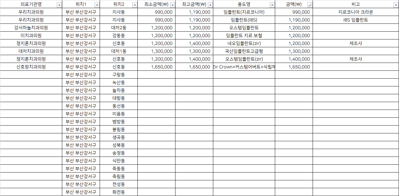 부산 강서구 기타동 지르코니아 임플란트 치과 가격 top5 우리 강서하늘 이