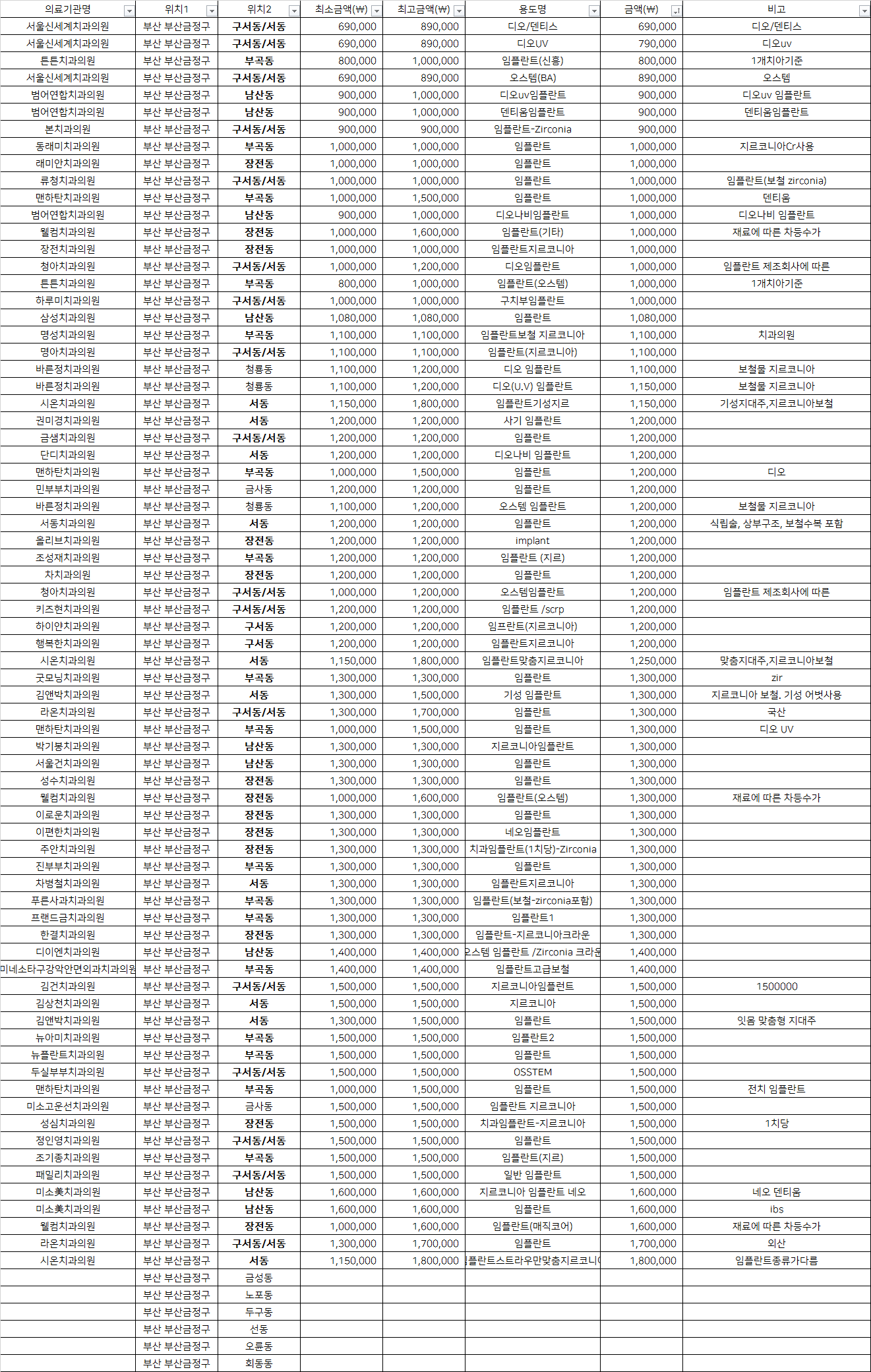 부산 금정구 지르코니아 임플란트 치과 가격 top5 서울신세계 튼튼 범어연합