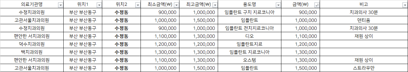출처 : 건강보험심사평가원 비급여 진료비용 정보