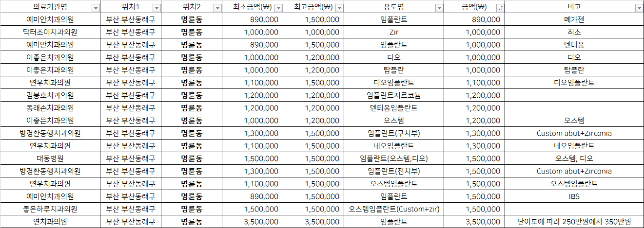 부산 동래구 명륜동 지르코니아 임플란트 치과 가격 top5 예미안 닥터조이 이좋은