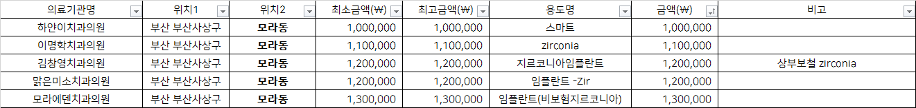 부산 사상구 모라동 지르코니아 임플란트 치과 가격 top5 하얀이 이명학 김창영