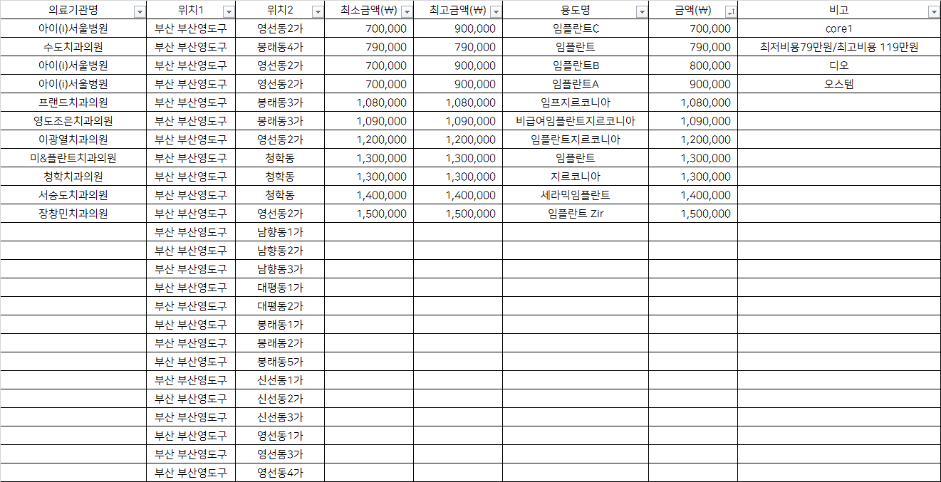 부산 영도구 기타동 지르코니아 임플란트 치과 가격 top5 아이서울병원 수도 프랜드