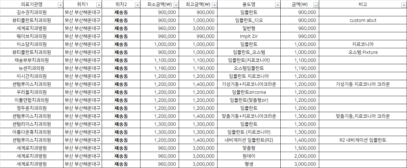 출처 : 건강보험심사평가원 비급여 진료비용 정보