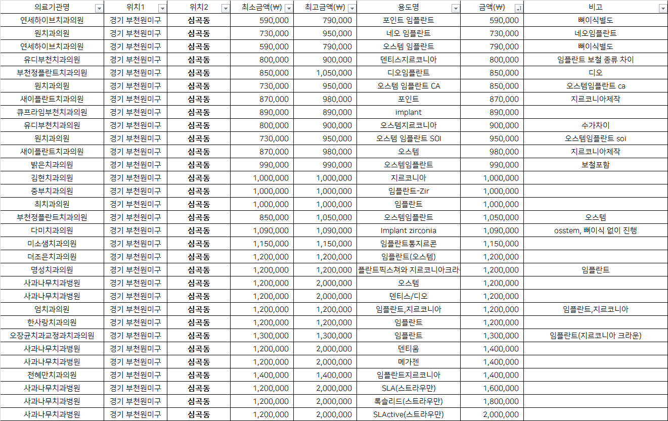 출처 : 건강보험심사평가원 비급여 진료비용 정보
