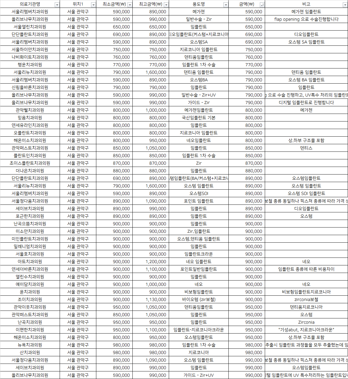 서울특별시 관악구 최저가 top7