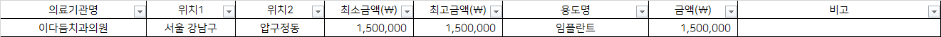 출처 : 건강보험심사평가원 비급여 진료비용 정보