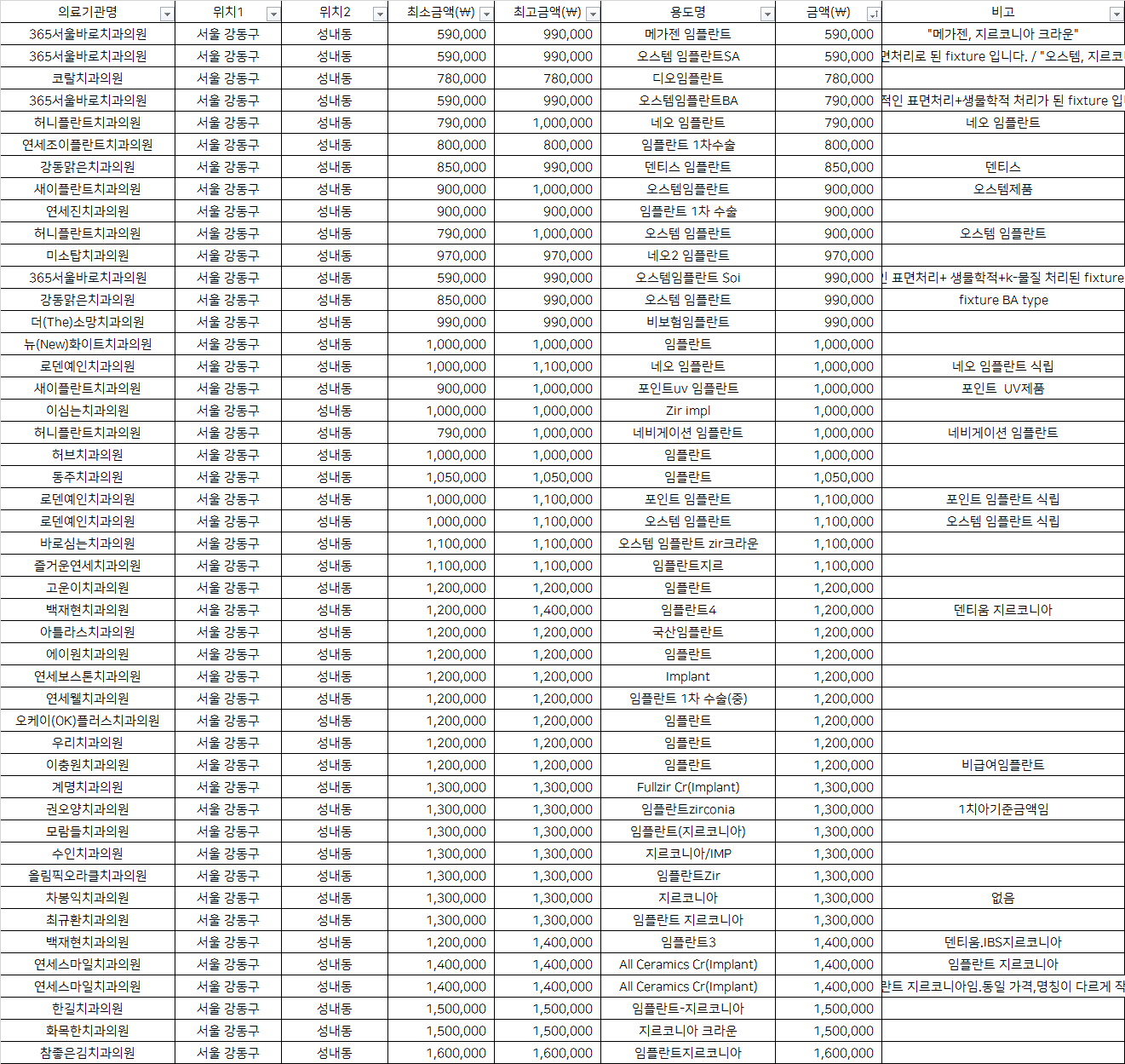 서울특별시 강동구 성내동 지르코니아 임플란트 치과 가격 top5 365서울바로 코랄 허니플란트 (update)