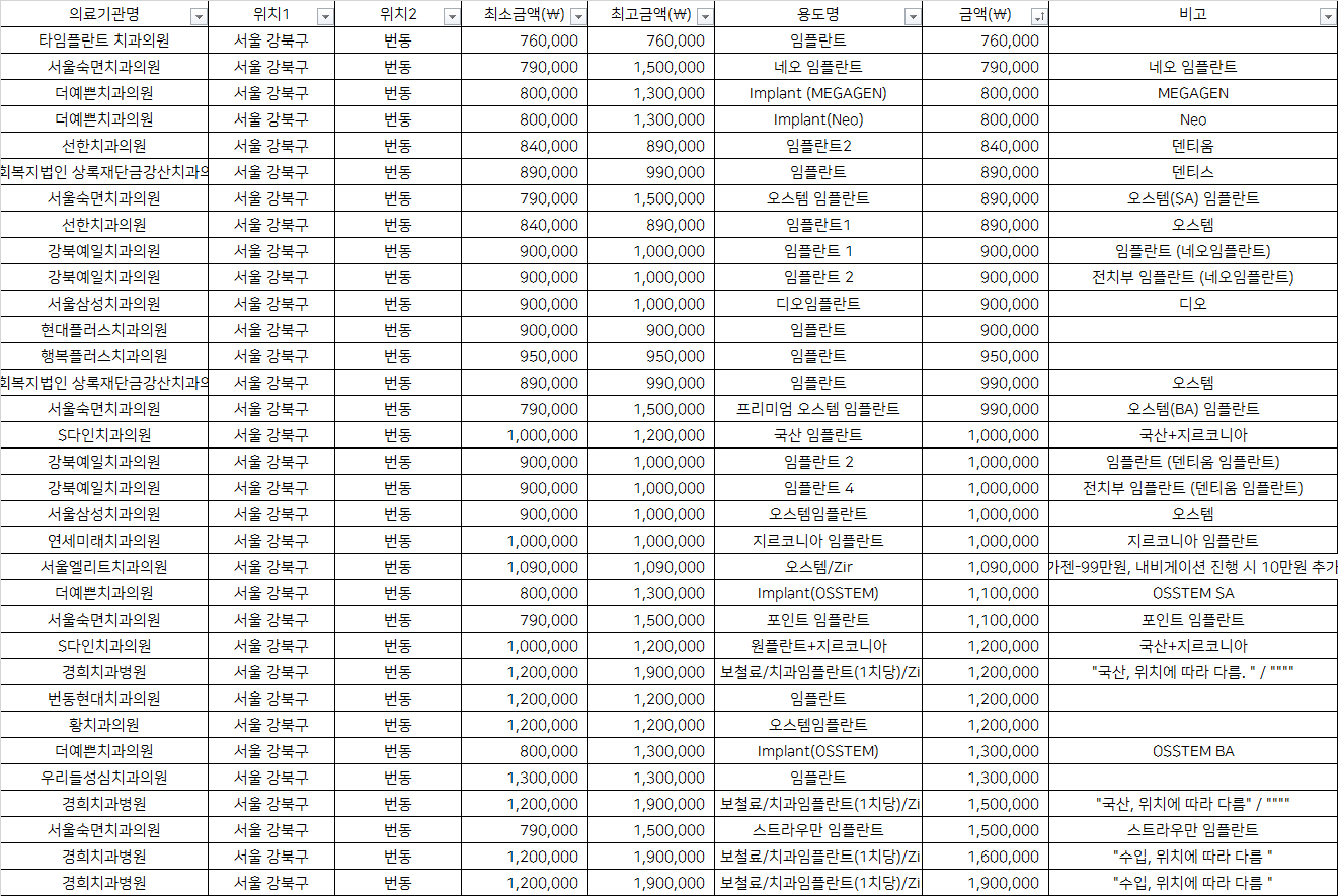 강북예일치과의원 임플란트 1               900,000 임플란트 (네오임플란트)