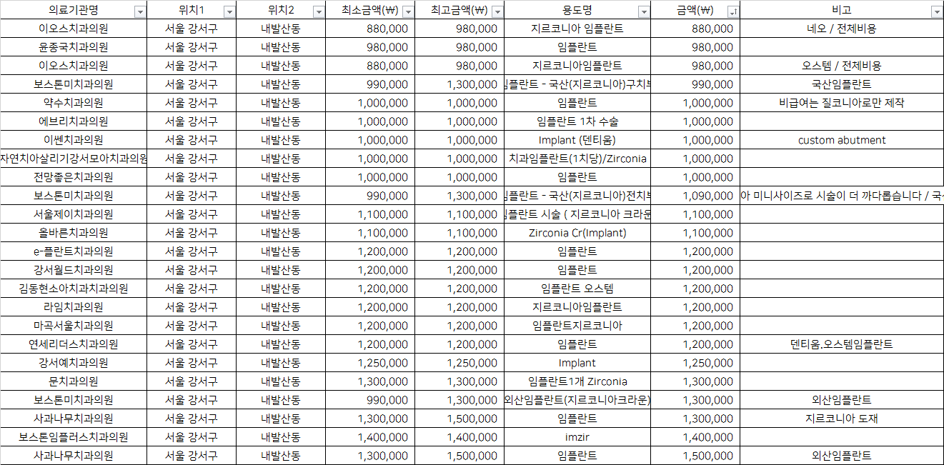 | 강서예치과의원 | Implant | 1,250,000 | |