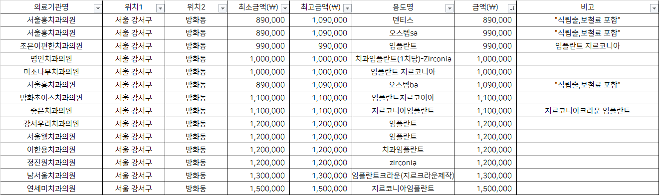 서울홍치과의원 오스템ba           1,090,000 "식립술,보철료 포함"