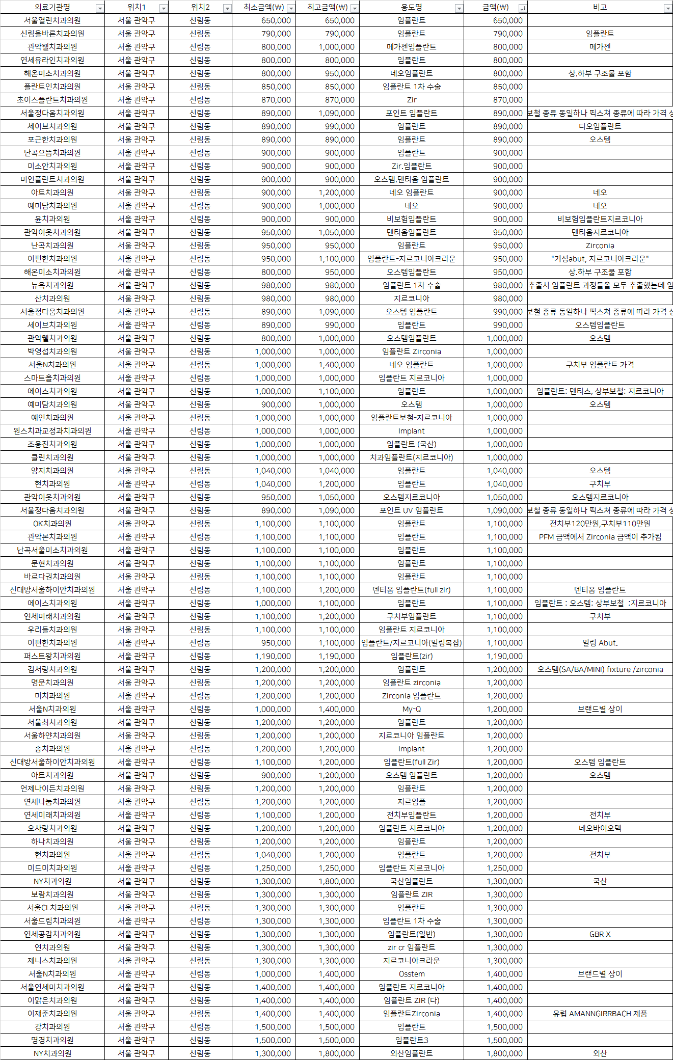 신림올바른치과의원 임플란트               790,000 임플란트