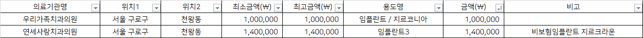 지역별 금액을 비교하시어 거주지 근처에서 저렴하게, 합리적인 비용으로 임플란트 시술 받으시기를 바랍니다.