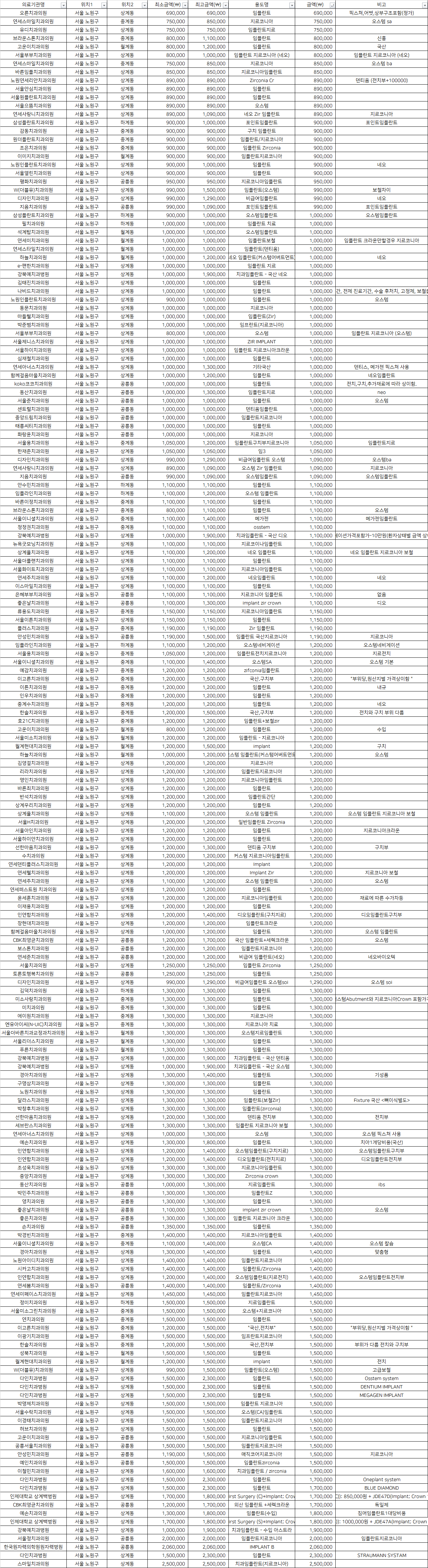 지역별 금액을 비교하시어 거주지 근처에서 저렴하게, 합리적인 비용으로 임플란트 시술 받으시기를 바랍니다.