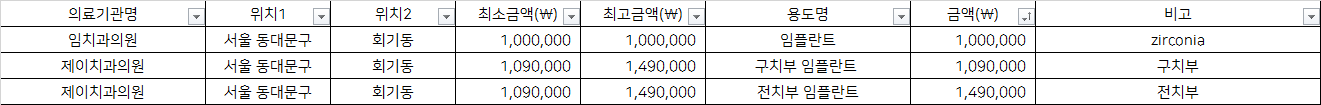 지역별 금액을 비교하시어 거주지 근처에서 저렴하게, 합리적인 비용으로 임플란트 시술 받으시기를 바랍니다.