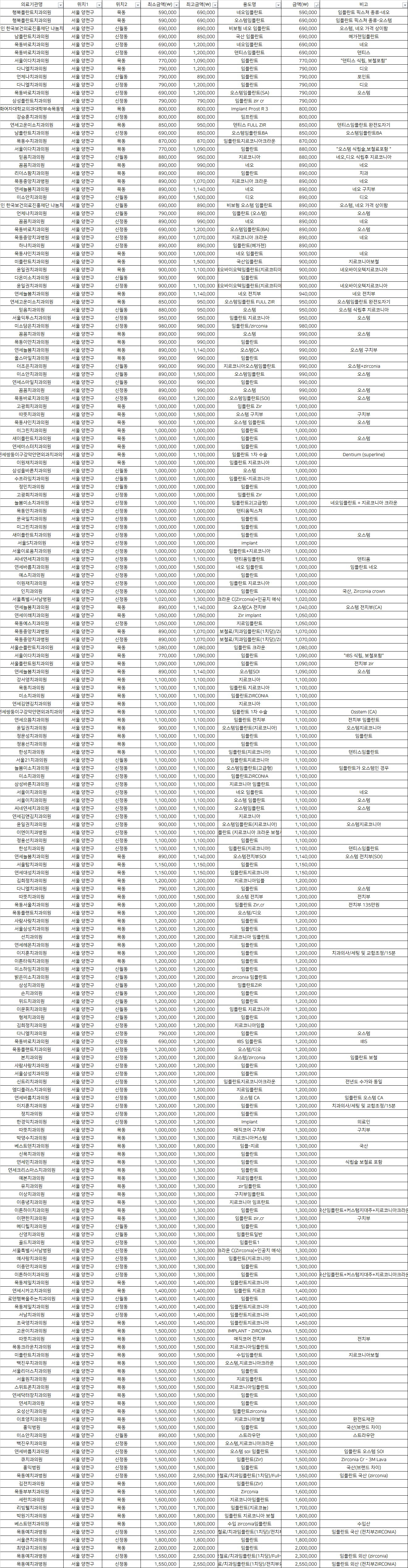 지역별 금액을 비교하시어 거주지 근처에서 저렴하게, 합리적인 비용으로 임플란트 시술 받으시기를 바랍니다.