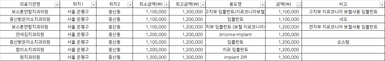 지역별 금액을 비교하시어 거주지 근처에서 저렴하게, 합리적인 비용으로 임플란트 시술 받으시기를 바랍니다.