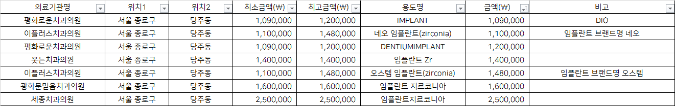 지역별 금액을 비교하시어 거주지 근처에서 저렴하게, 합리적인 비용으로 임플란트 시술 받으시기를 바랍니다.