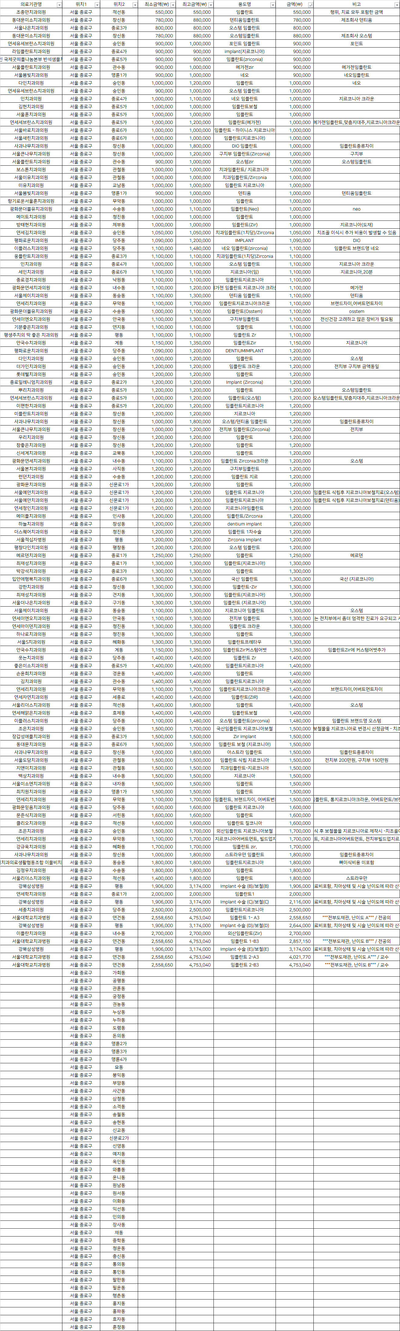 지역별 금액을 비교하시어 거주지 근처에서 저렴하게, 합리적인 비용으로 임플란트 시술 받으시기를 바랍니다.