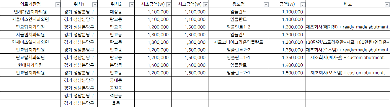 성남 분당구 기타동 지르코니아 임플란트 치과 가격 top5 연세가인 서울미소안 판교탑
