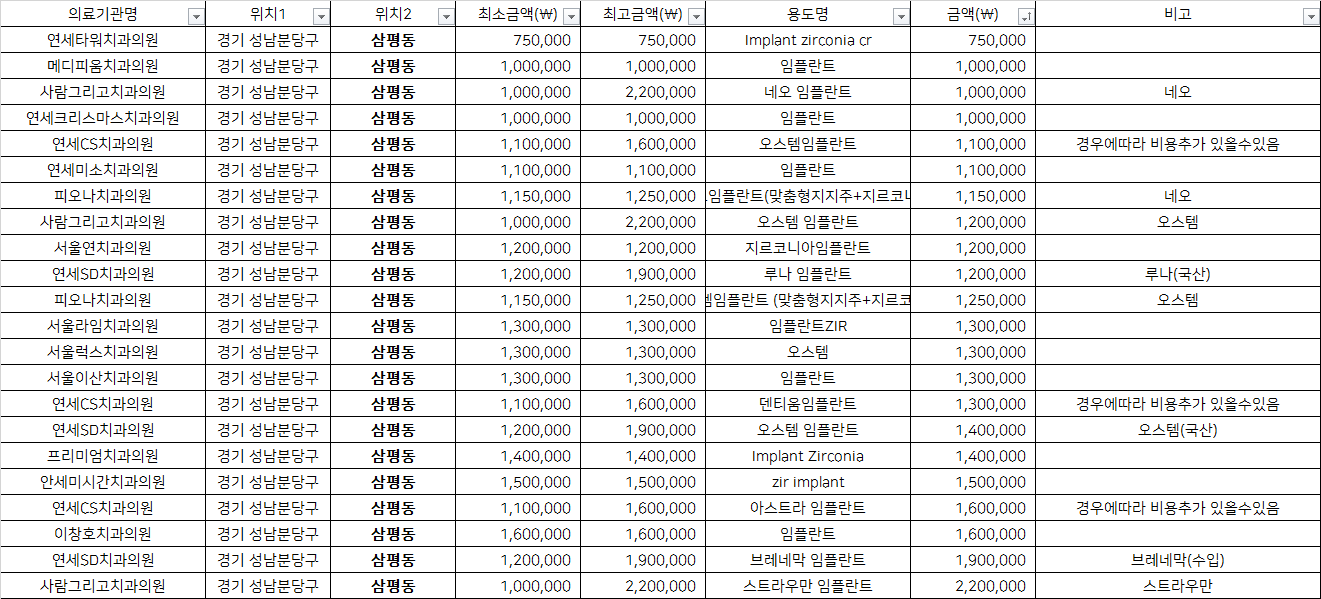 성남 분당구 삼평동 지르코니아 임플란트 치과 가격 top5 연세타워 메디피움 사람그리고