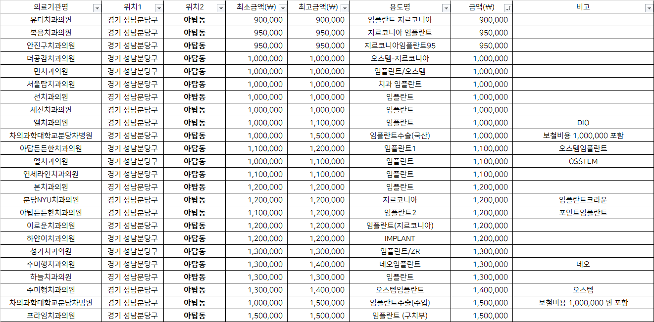 성남 분당구 야탑동 지르코니아 임플란트 치과 가격 top5 유디 복음 안진구