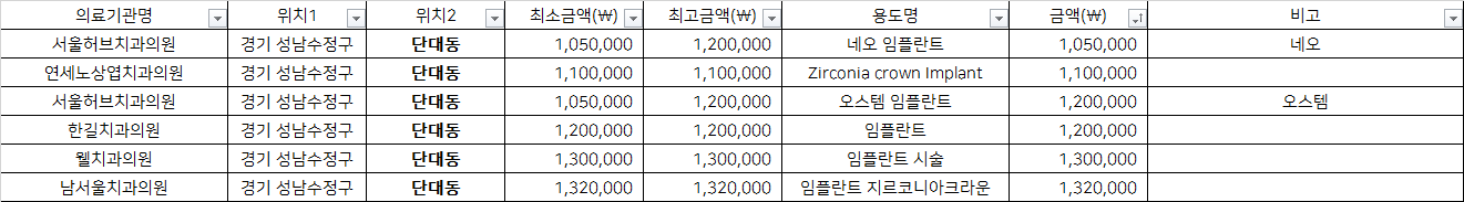 성남 수정구 단대동 지르코니아 임플란트 치과 가격 top5 서울허브 연세노상엽 한길