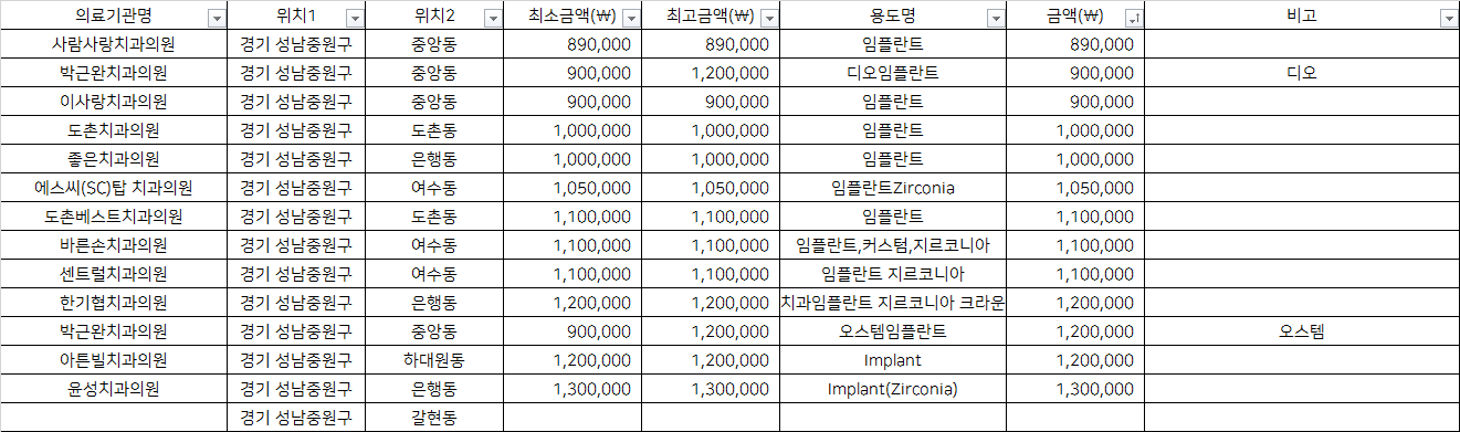 성남 중원구 기타동 지르코니아 임플란트 치과 가격 top5 사람사랑 박근완 이사랑