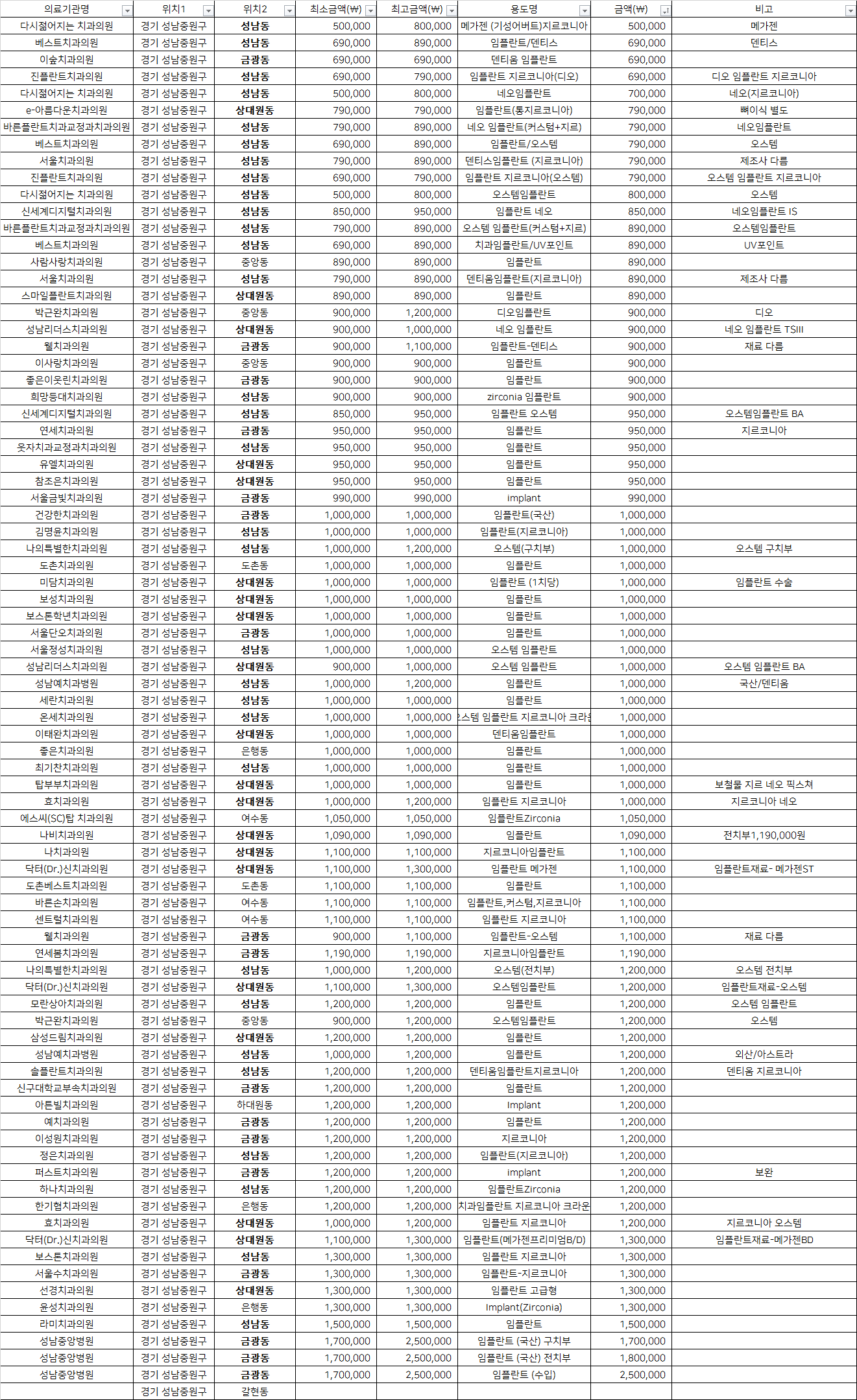 성남 중원구 지르코니아 임플란트 치과 가격 top5 다시젊어지는 베스트 이숲