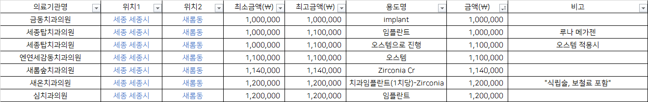 세종시 새롬동 지르코니아 임플란트 치과 가격 top5 금동 세종탑 엔연세감동