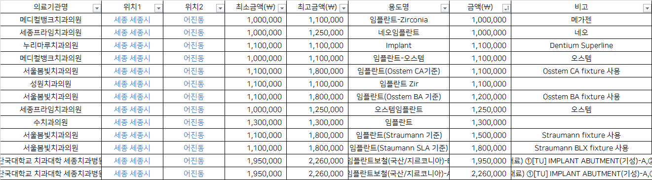 세종시 어진동 지르코니아 임플란트 치과 가격 top5 메디컬뱅크 세종프라임 누리마루