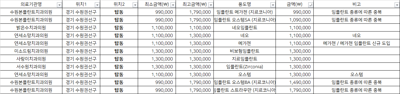 수원 권선구 탑동 지르코니아 임플란트 치과 가격 top5 수원본플란트 밝은수 연세소망