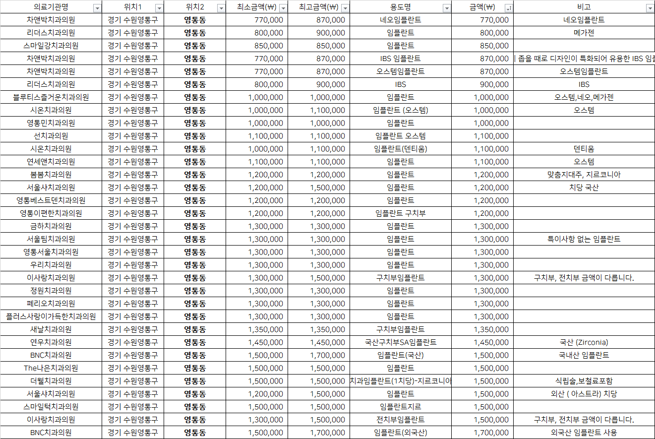 수원 영통구 영통동 지르코니아 임플란트 치과 가격 top5 차앤박 리더스 스마일강