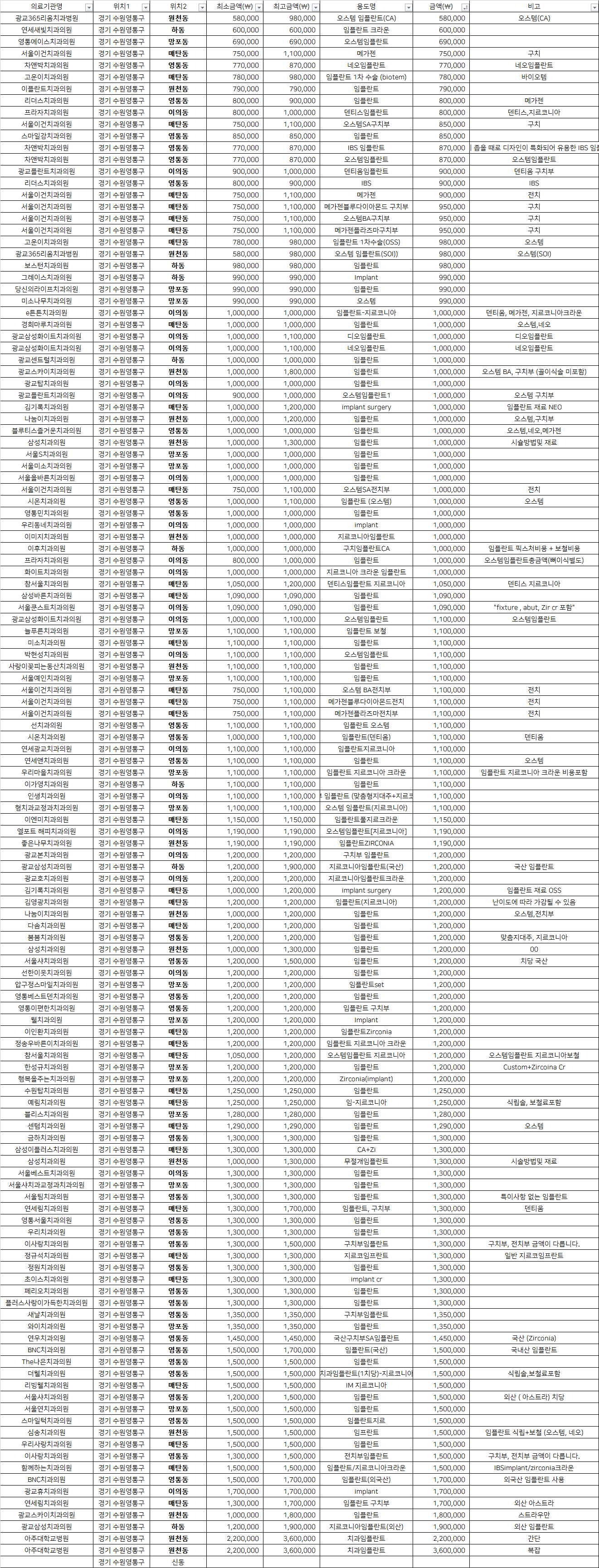 수원 영통구 지르코니아 임플란트 치과 가격 top5 광교365리움 연세새빛 영통에이스