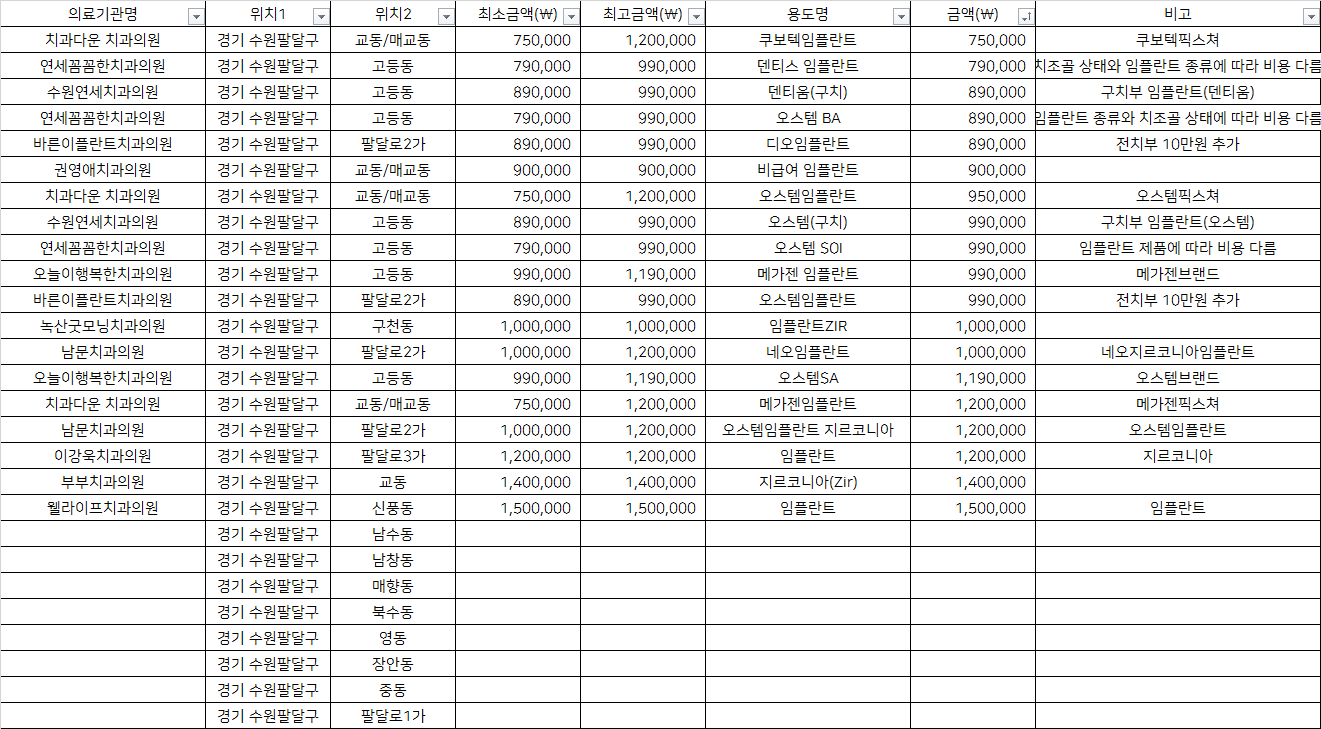 수원 팔달구 기타동 지르코니아 임플란트 치과 가격 top5 치과다운 연세꼼꼼한 수원연세