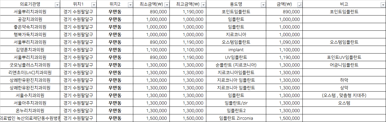 수원 팔달구 우만동 지르코니아 임플란트 치과 가격 top5 서울뿌리 공감 좋은약속