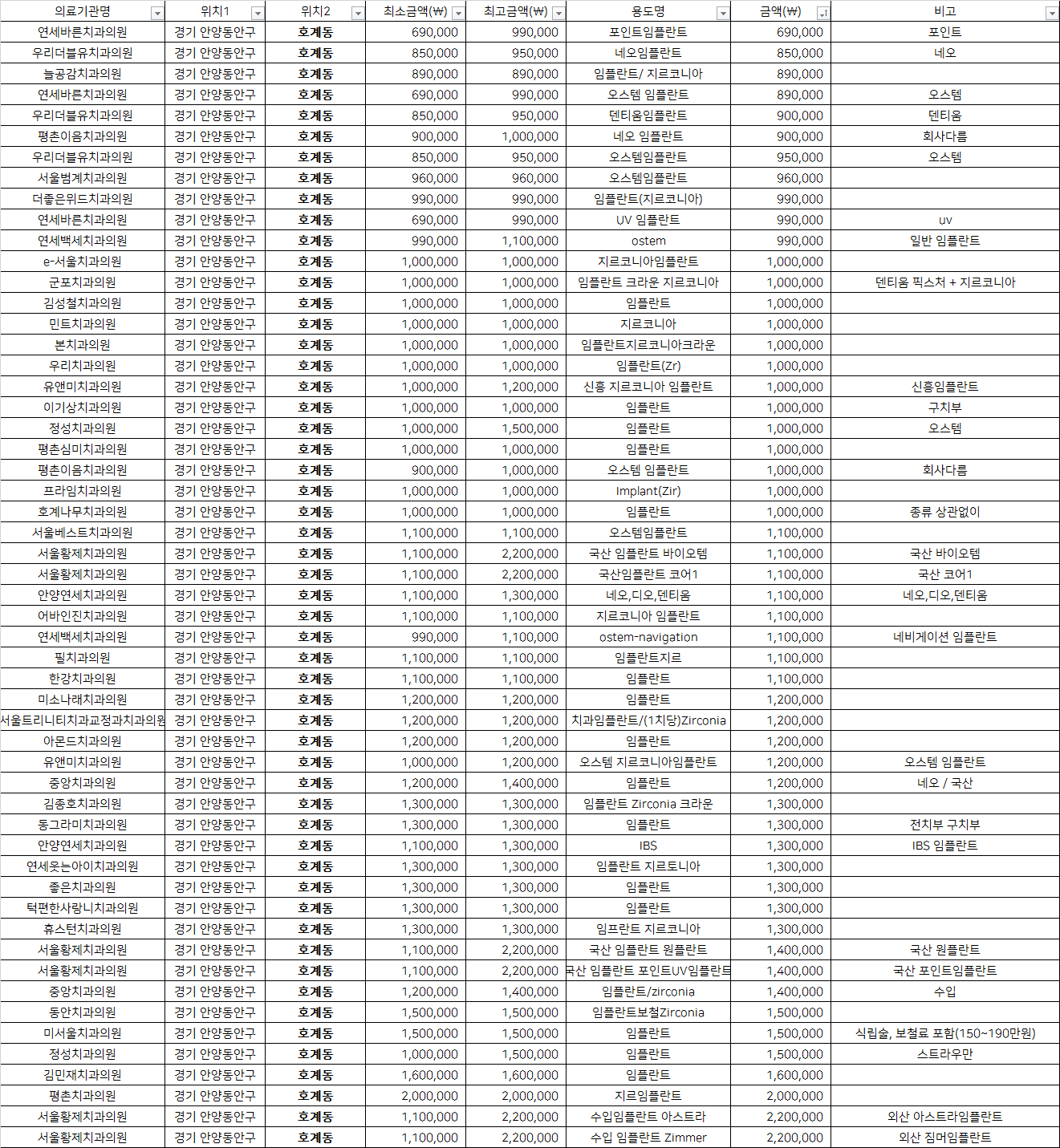 출처 : 건강보험심사평가원 비급여 진료비용 정보