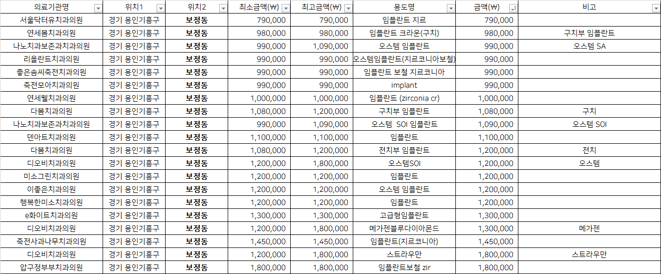 출처 : 건강보험심사평가원 비급여 진료비용 정보