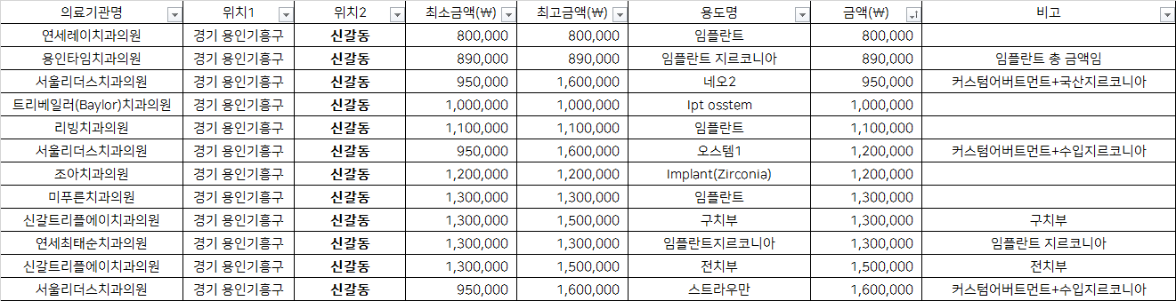용인 기흥구 신갈동 지르코니아 임플란트 치과 가격 top5 연세레이 용인타임 서울리더스