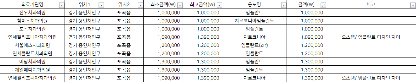 출처 : 건강보험심사평가원 비급여 진료비용 정보