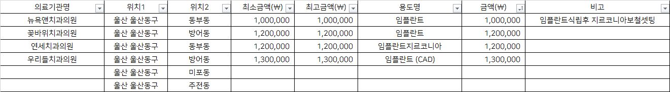 울산 동구 기타동 지르코니아 임플란트 치과 가격 top5 뉴욕앤 꽃바위 연세