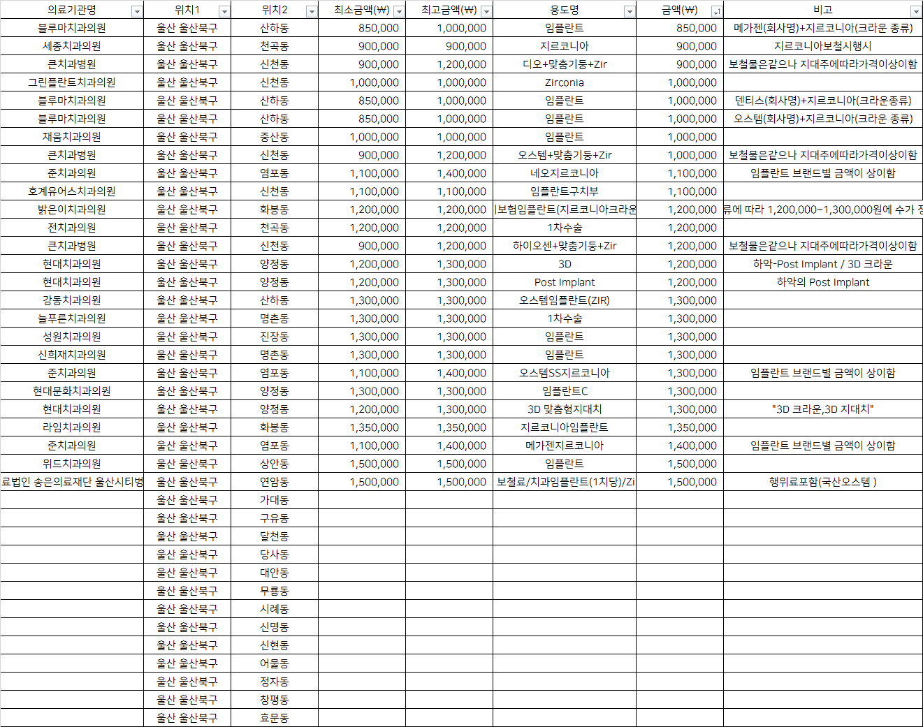 울산 북구 기타동 지르코니아 임플란트 치과 가격 top5 블루마 세종 큰
