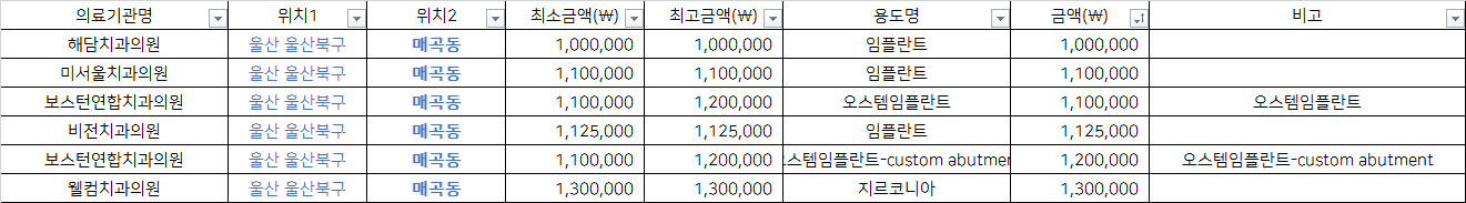 울산 북구 매곡동 지르코니아 임플란트 치과 가격 top5 해담 미서울 보스턴연합