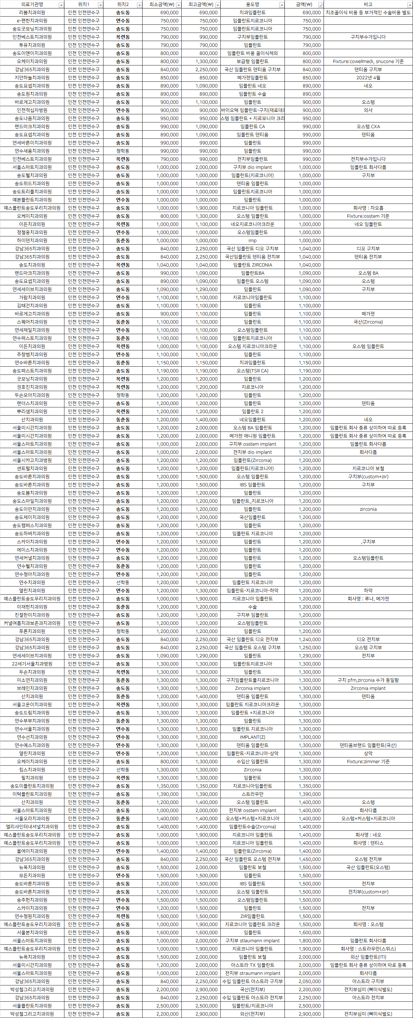 인천 연수구 지르코니아 임플란트 치과 가격 top5 리봄 e편한 송도굿모닝
