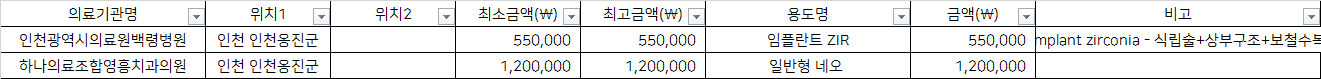 출처 : 건강보험심사평가원 비급여 진료비용 정보