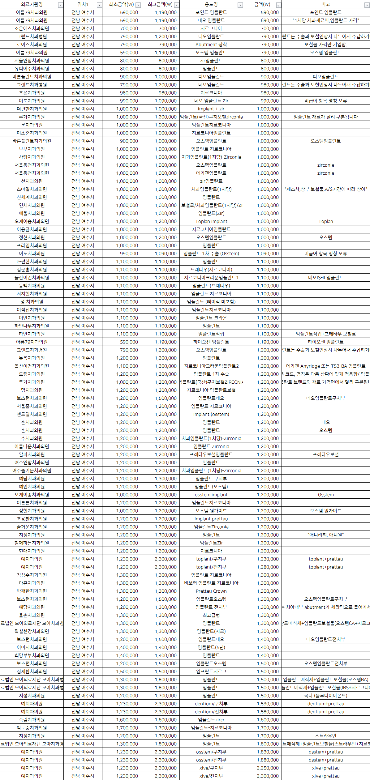 전남 여수 최저가 top5