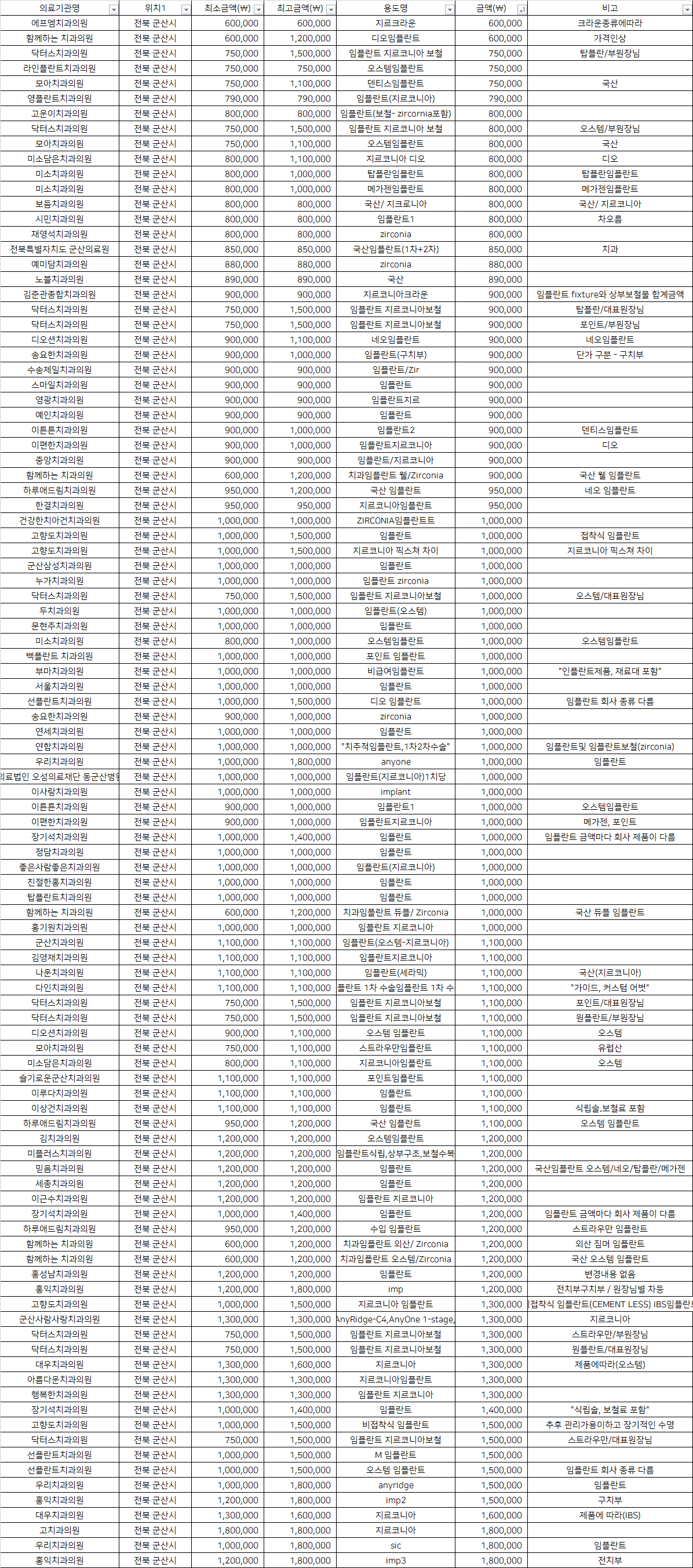 전북 군산 최저가 top5