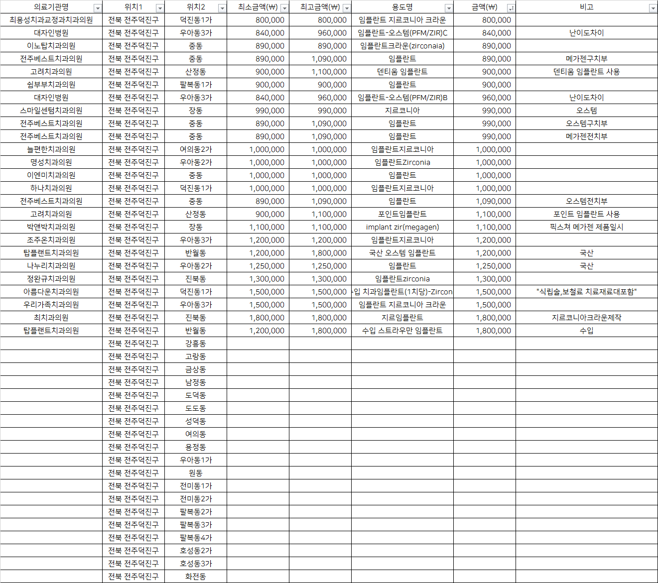 전북 전주 덕진구 기타동 지르코니아 임플란트 치과 가격 top5 최용성치과교정과 대자인병원 이노탑