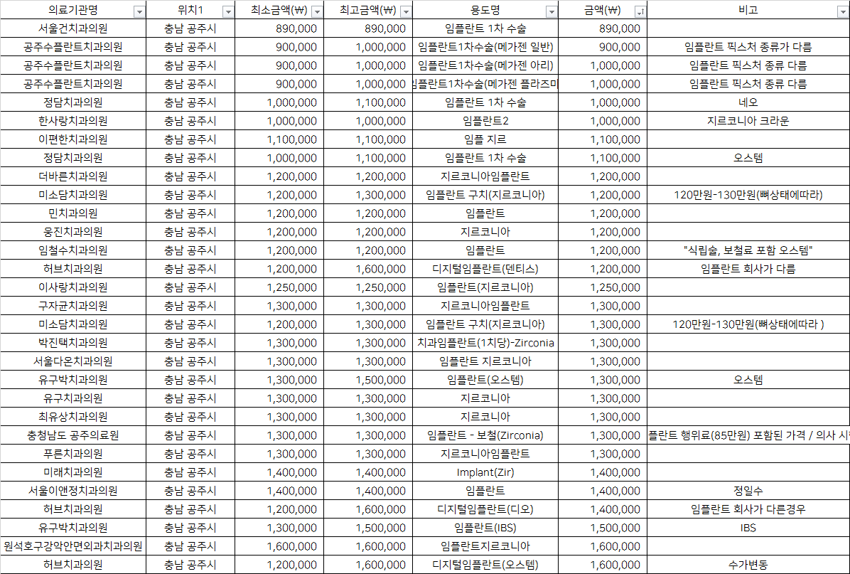 충남 공주 지르코니아 임플란트 치과 가격 top5 서울건 공주수플란트 정담