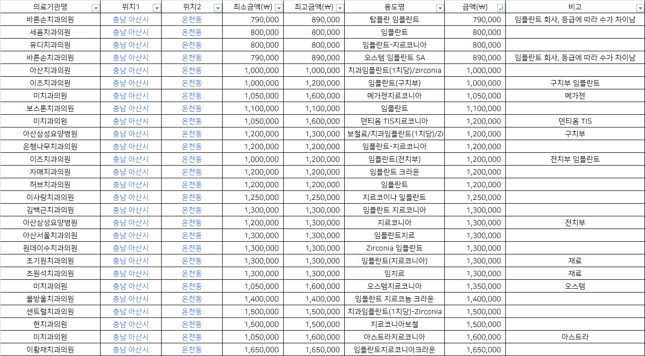 충남 아산 온천동 지르코니아 임플란트 치과 가격 top5 바른손 세움 유디