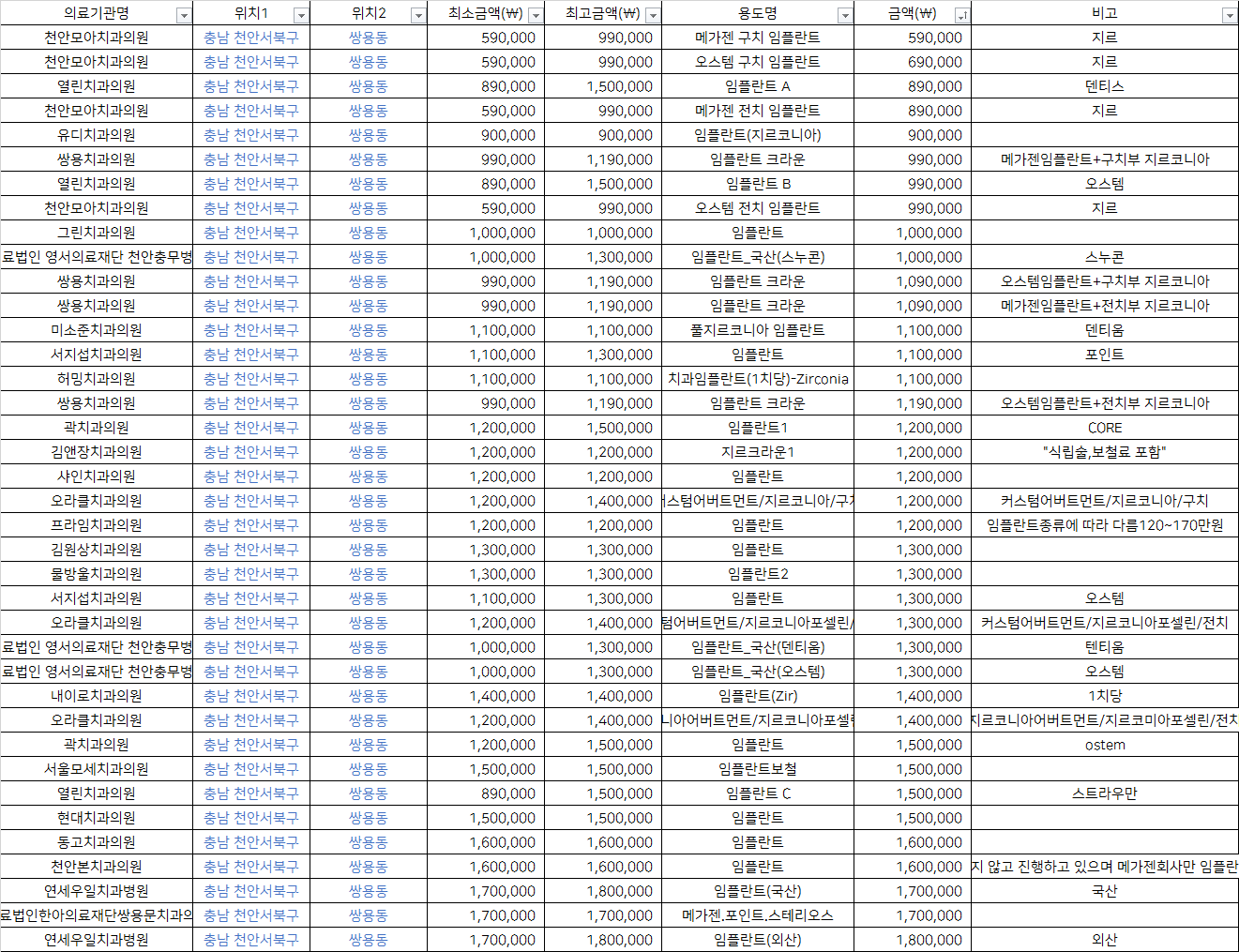 출처 : 건강보험심사평가원 비급여 진료비용 정보